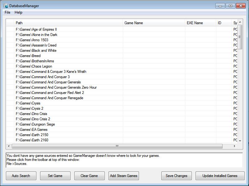 be added to the list above the buttons. Click 'Done' when you have added the locations of all your games. Adding Games to Database You should now have a window similar to below: