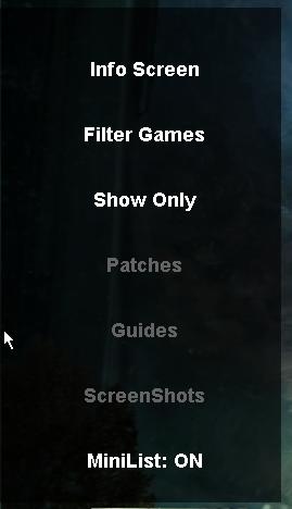 Filter Games – Brings up a list of ways to sort